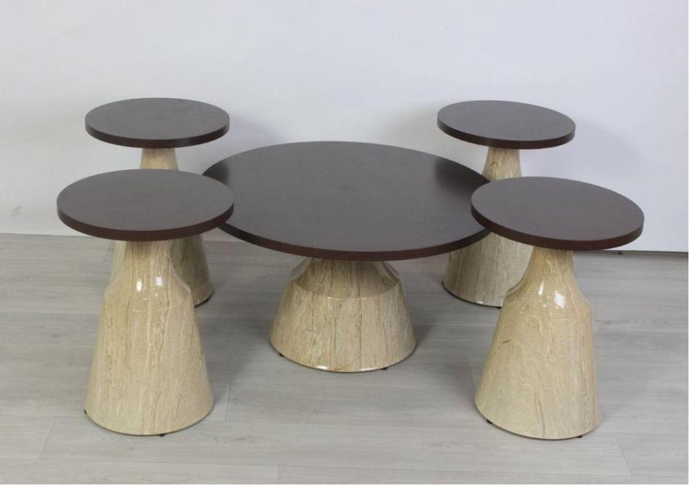 طقم طاولات سيراميك مكون من 5 قطع هو مجموعة من الطاولات بأحجام مختلفة، مصنوعة من السيراميك.
