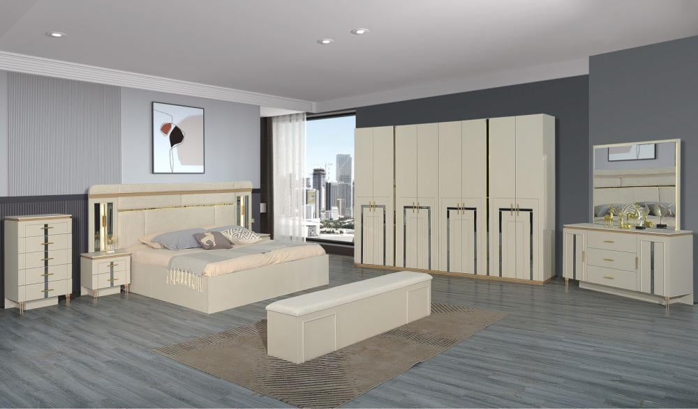 تتضمن المجموعة أريكة مريحة مزودة بتخزين مدمج، مما يزيد من الفعالية. كما تحتوي على سحابات عادية تسهل الوصول إلى ما تحتاجه بشكل سريع. مع هذه الميزات المتكاملة، توفر غرفة النوم تجربة مثالية تجمع بين الراحة والوظائف العملية.