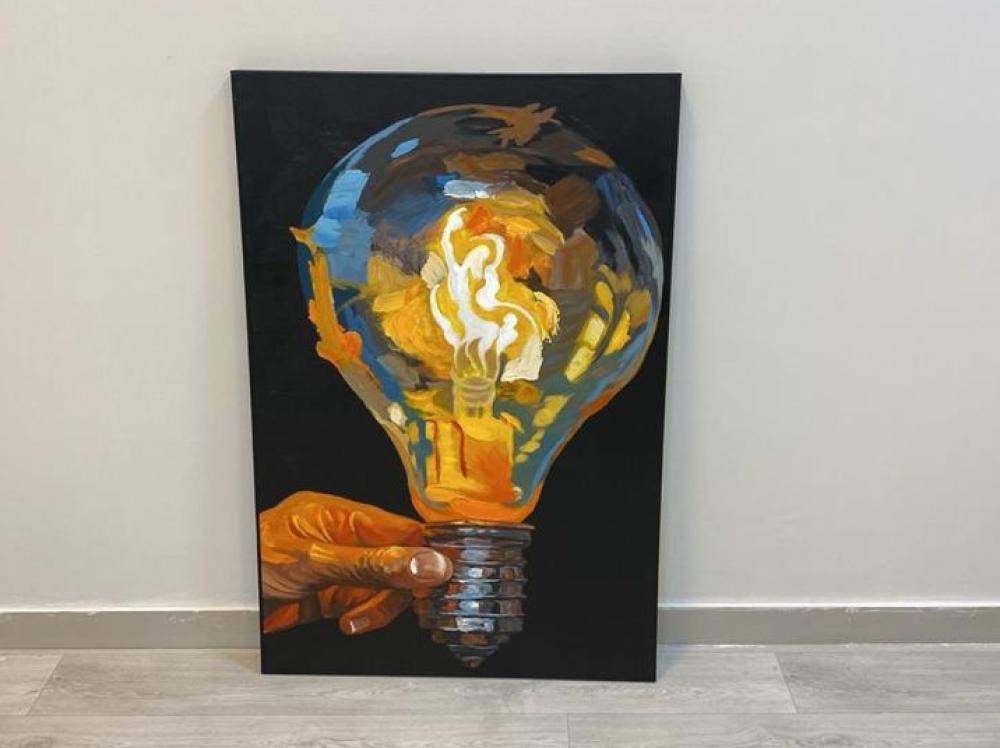 تأسر هذه اللوحة الجدارية بتصميمها العصري المبتكر الذي يجمع بين القوة والغموض.
